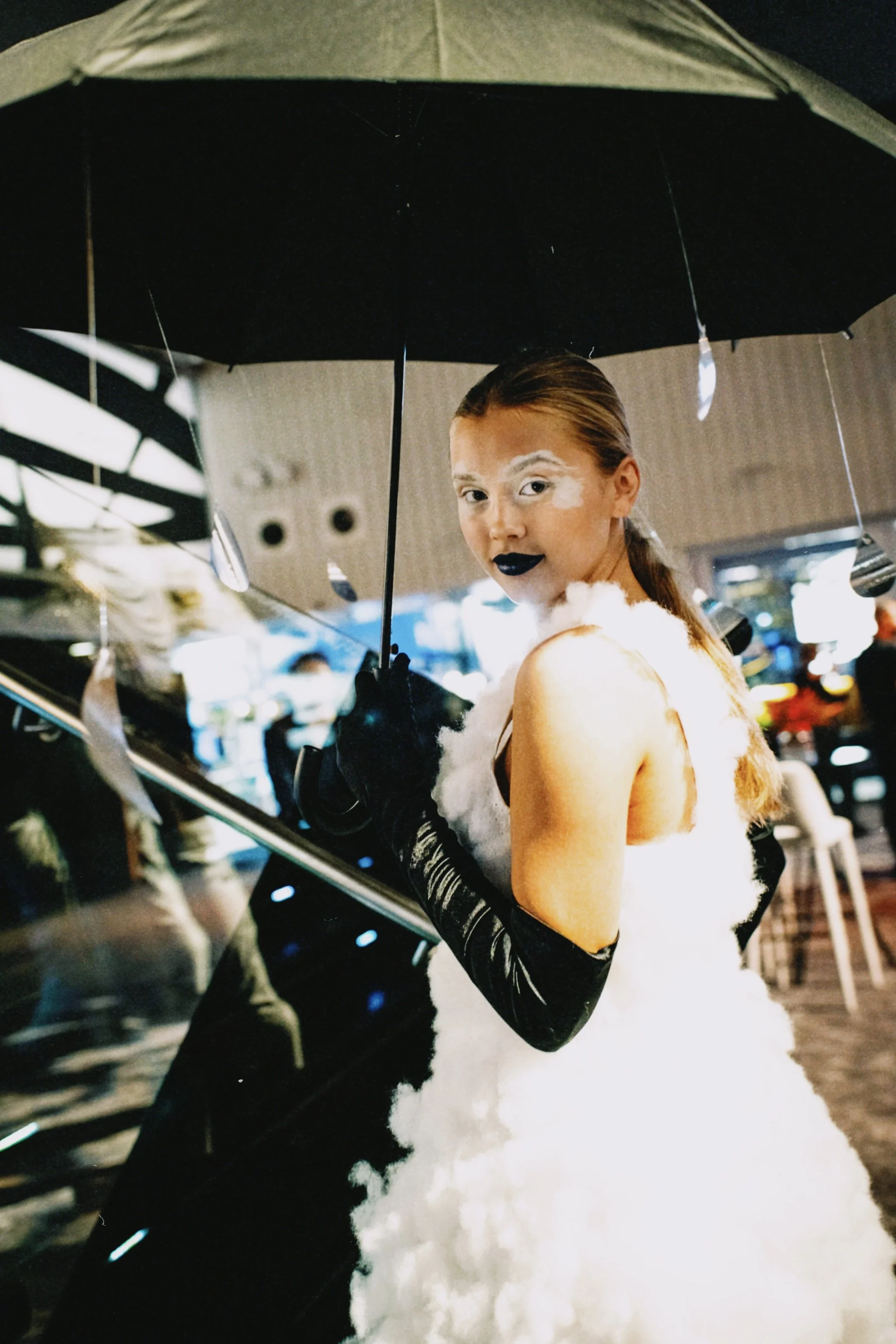 Styled all the looks for MASTERS Expo 2023 during a styling internship with Models At Work, with each ensemble representing a distinct theme of the year, such as climate, economy, and innovation. The cloud dress and lamp pieces were handcrafted by me.